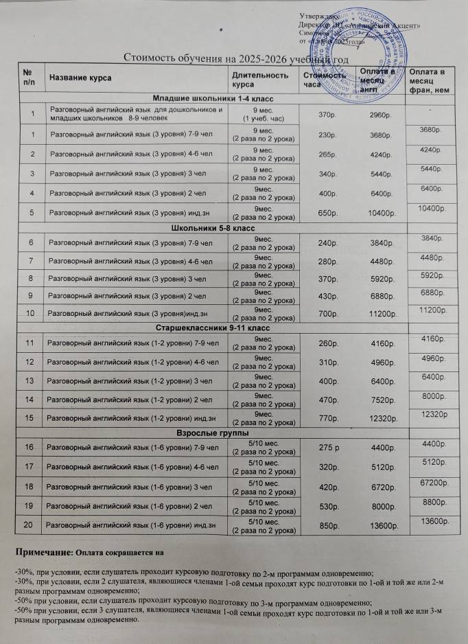 - Мы одна из немногих частных школ в городе, которая предоставляет перерасчет за обучение по уважительным причинам! Мы уважаем своих клиентов!
